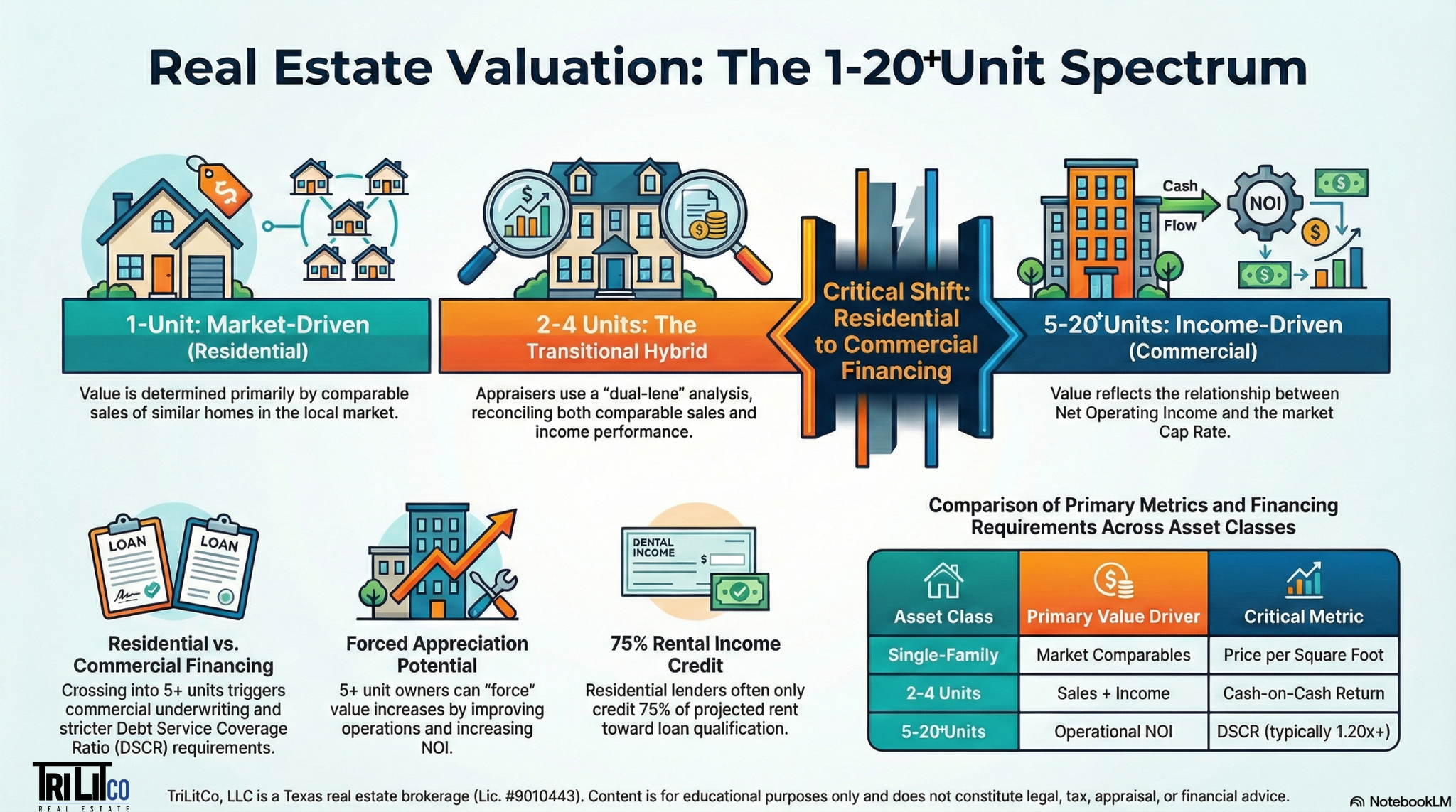 For Central Texas residential rental owners evaluating properties in the 1-20 unit range, the practical takeaway is this: the shift from 4 to 5 units generally triggers commercial financing and income-driven valuation, but confirm classification and financing eligibility with your lender before proceeding with analysis.